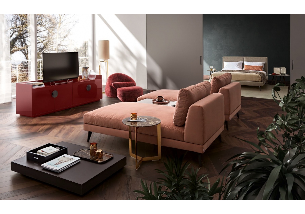 Ofelia diseñado por Carlo Bimbi para Dema es un aparador bajo con cuatro puertas plegables con balda abierta. Fabricado con estructura y baldas en fibra de madera MDF, tiradores de acero con acabado galvánico en oro, níquel negro y cromo. Pies en acero lacado o madera de fresno. Disponible en diferentes acabados.