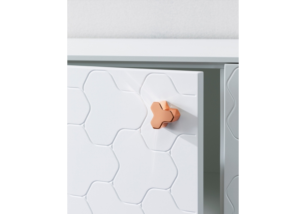 Soko diseñado por Miniforms Lab es un aparador con estructura en acabado lacado, puertas con diseño fresado en la superficie y pomos en cobre o lacados en el mismo acabado que el mueble. Disponible en diferentes acabados y medidas.