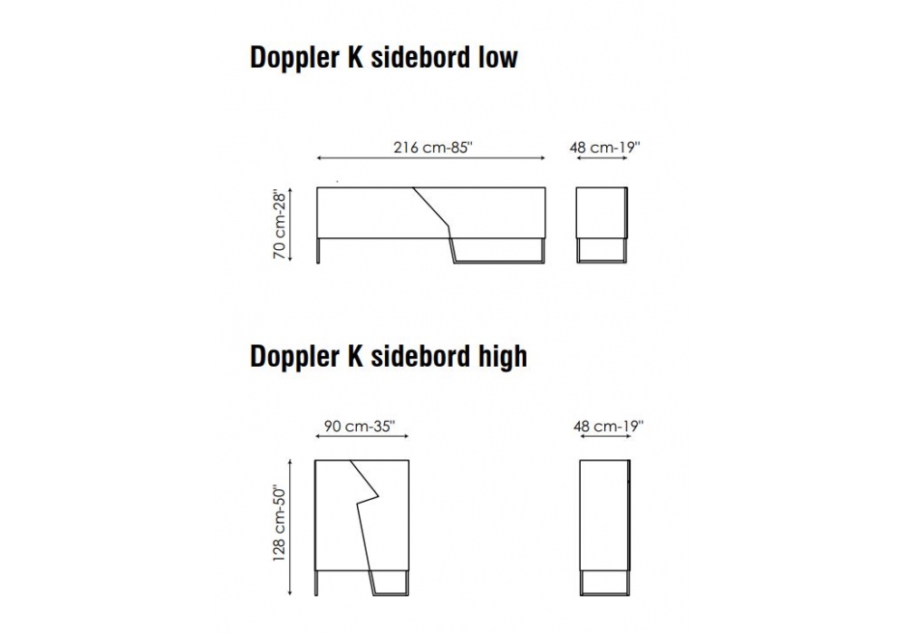Doppler K diseñado por Giuseppe Viganò para Bonaldo es un aparador con base en metal pintado en diferentes acabados, puertas en cerámica en varios colores y estructura externa en madera lacada mate, blanca o negra. Disponible en 2 modelos.
