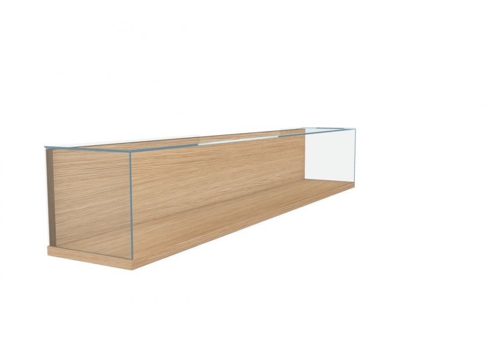 Nest diseñada por Lievore, Altherr y Molina para Sovet es una vitrina compuesta por estructura de roble y tapa de cristal transparente extralight.