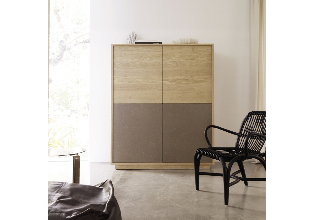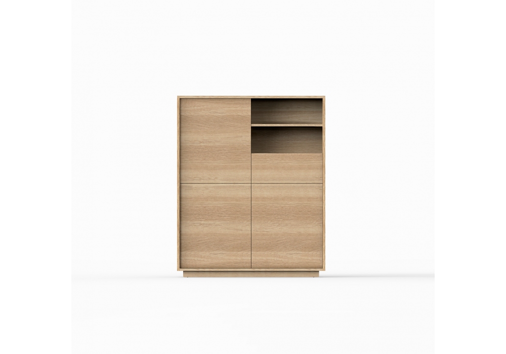 Basic diseñado por Studio expormim para Expormim es un mueble con 4 puertas en roble macizo europeo. Posibilidad de personalizar el frente y los módulos de estantes con diferentes acabados lacados. Disponible en diferentes acabados.