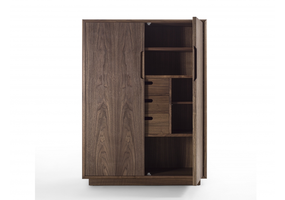 Sospiro diseñado por Claudio Bellini para Riva 1920 es un mueble contenedor en madera maciza y blockboard. Equipado con dos puertas batientes con tirador empotrado y perfilado, que encierran en su interior dos estantes y tres cajones ensamblados con juntas de cola de milano. Estructura con bordes redondeados.