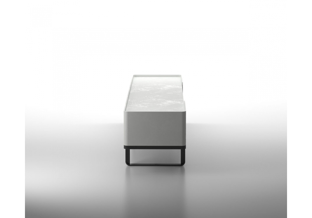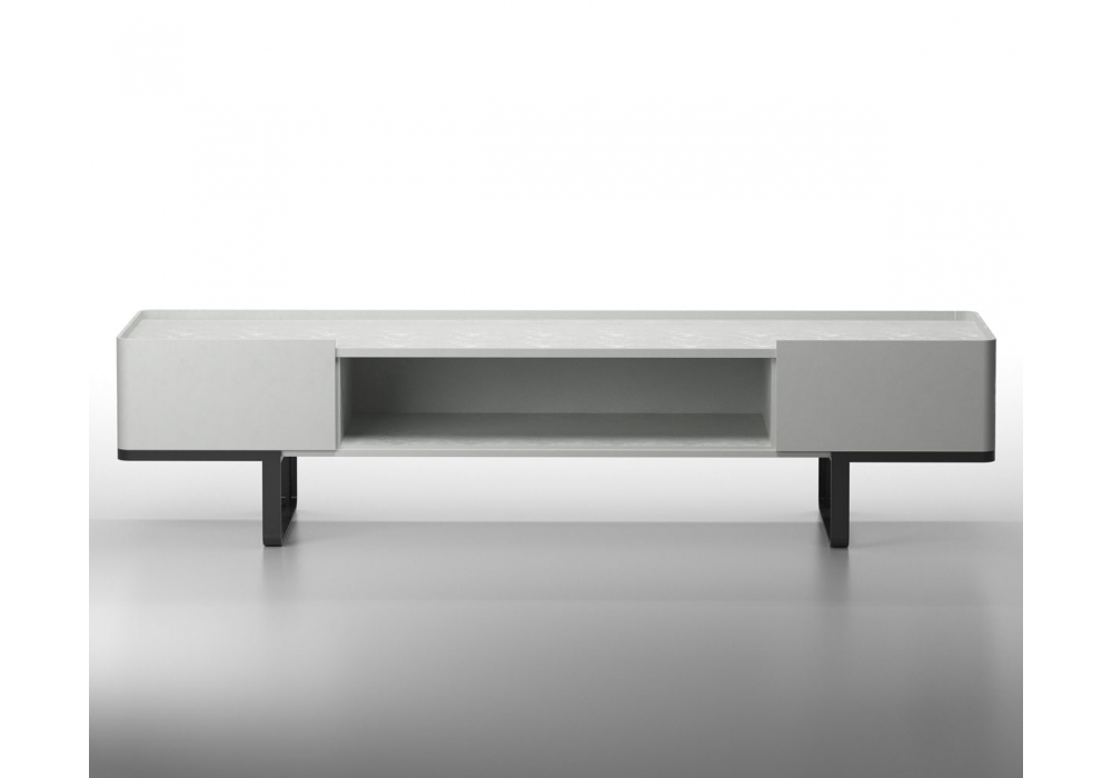 Mayor Low diseñado por Marco Piva para Casamania & Horm es un aparador sostenido por dos patas simétricas de metal, unidas a la pieza en la parte inferior sólo lateralmente. La tapa central está ligeramente retranqueada y tiene un borde lateral sin aristas vivas que suaviza toda la estructura.