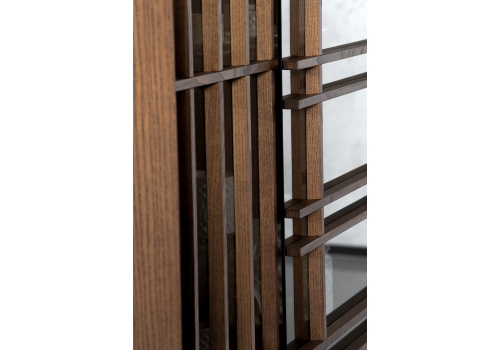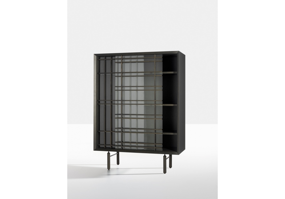 Sen diseñado por Chiara Andreatti para Potocco es un mueble contenedor con estructura en fresno macizo. Puertas correderas en bronce o vidrio flotado templado transparente.