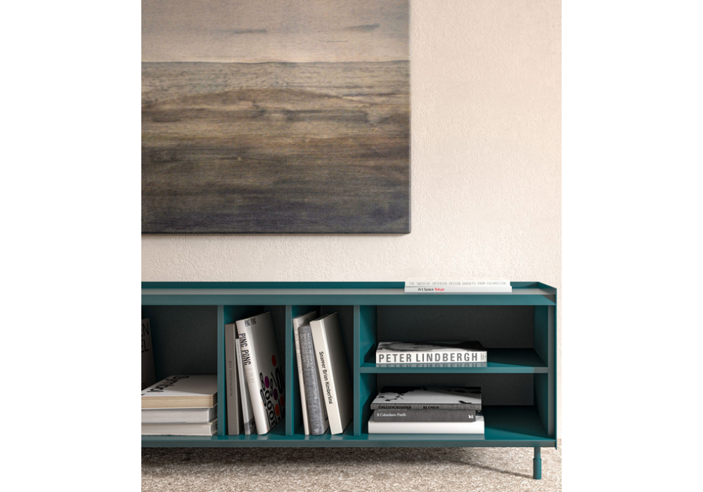 Flyer diseñado por Alessio Bassan para Capodopera es un aparador con estructura en MDF lacado mate en diferentes acabados. Disponible en la versión con o sin sistema de iluminación led.