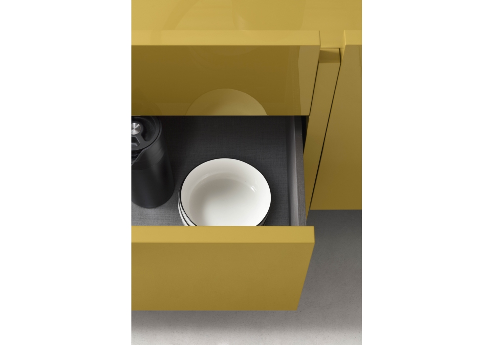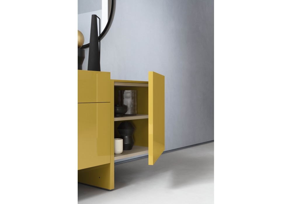 Recta diseñado por Marelli & Molteni para Alf Dafrè es un aparador con estructura en roble o lacado con acabado interno en melamina cuero crema.