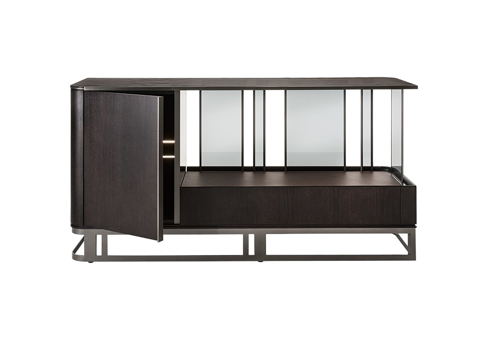Hikari diseñado por HBA para Giorgetti es un aparador realizado en metal y fresno, tapa en vidrio recocido, sombreado y templado reverso. Disponible en diferentes acabados.