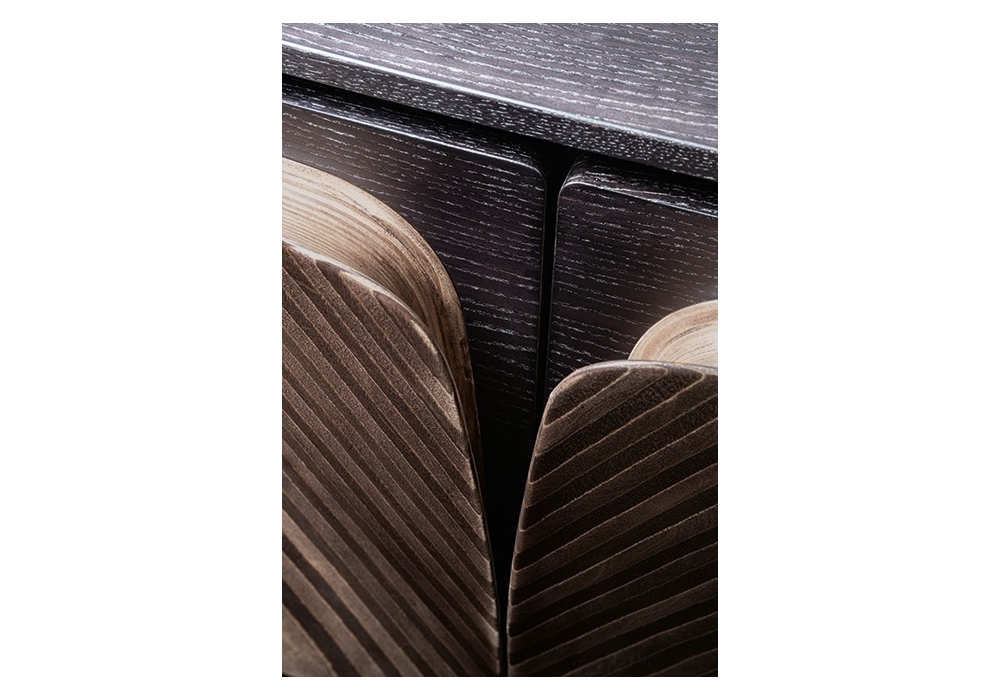 Scirocco diseñado por Draga & Aurel para Giorgetti es un mueble contenedor realizado en fresno con puertas de contrachapado de abedul.