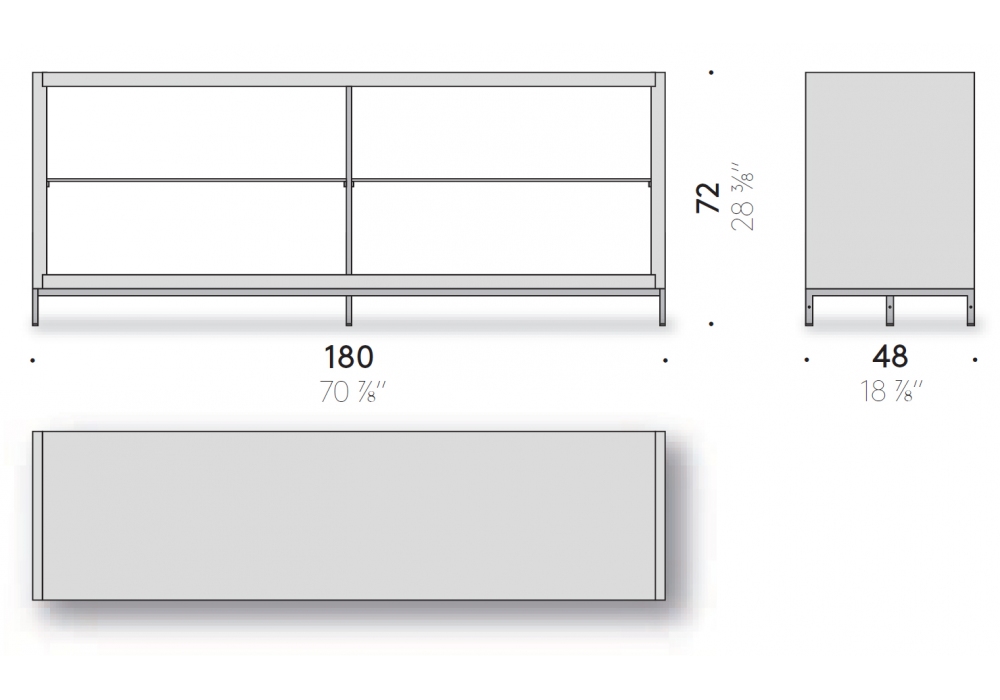 Combi Cabinet diseñado por Piero Lissoni para DePadova es un aparador con base de acero pintado en polvo negro mate con patas regulables. La estructura está realizada con paneles de madera laminada chapados en roble natural o pintado. Los estantes son de cristal transparente extraclaro mientras que la parte trasera es de cristal armado o templado reflectante pintado en color café. El estante superior es de cristal templado pintado en color café. Combi Cabinet está disponible en diferentes acabados y con o sin sistema de iluminación interior.