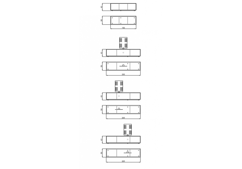 | Dimensiones | 150 x 50 x H 43 cm; 200 x 50 x H 43 cm. |