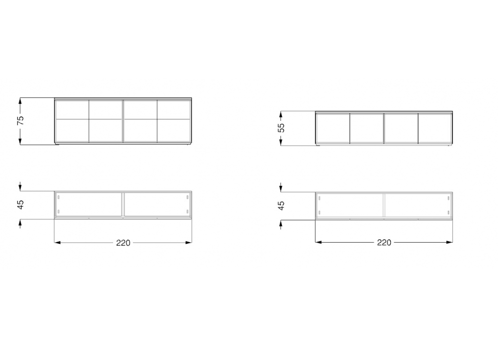 | Dimensiones | 220 x 45 x H 75 cm; 220 x 45 x H 55 cm. |
