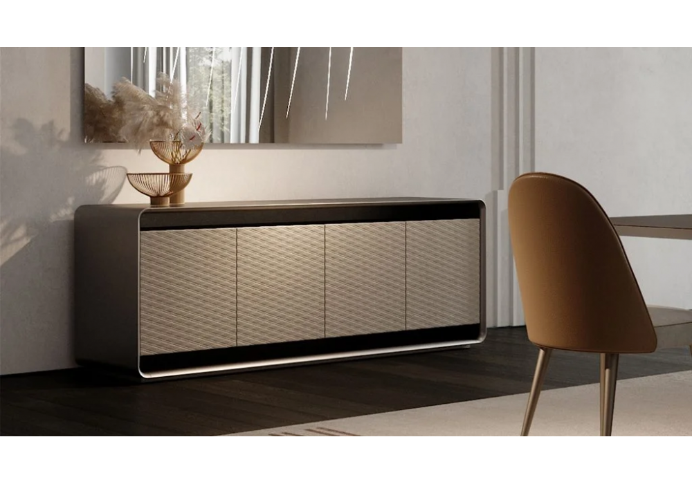 Oh diseñado por Tulczinsky para Reflex Angelo es un aparador con estructura de madera pintada y perfilada. 4 puertas suspendidas con apertura push-pull revestidas en cuero. Disponible en dos dimensiones.
