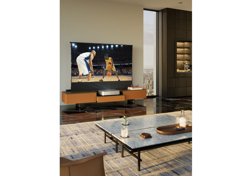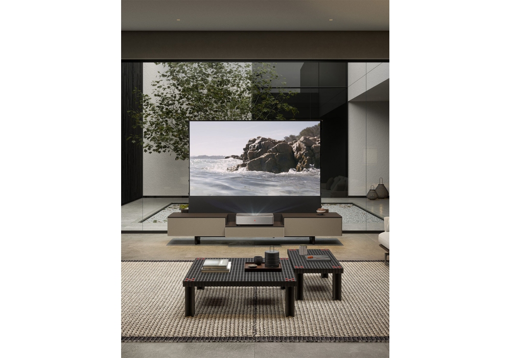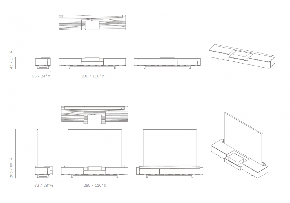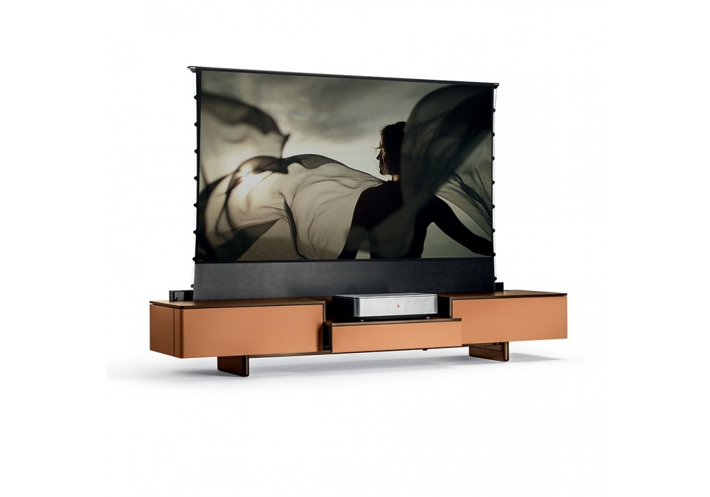 Fidelio Multimedia Cabinet diseñado por Roberto Lazzeroni en colaboración con Leica para Poltrona Frau es un mueble elegante y tecnológico diseñado para el proyector Leica Cine 1. Fabricado en fresno teñido moca y arce natural, alberga una tapa con puerta motorizada que oculta la pantalla de proyección. Incluye dos cajones laterales con sistema push-pull y frentes de cuero, y un compartimento central extraíble para colocar el proyector. La base de fresno y acero negro mate cuenta con patas ajustables. Trasera con paneles extraíbles para el paso e inspección de cables. Disponible con costuras tono sobre tono o en contraste.