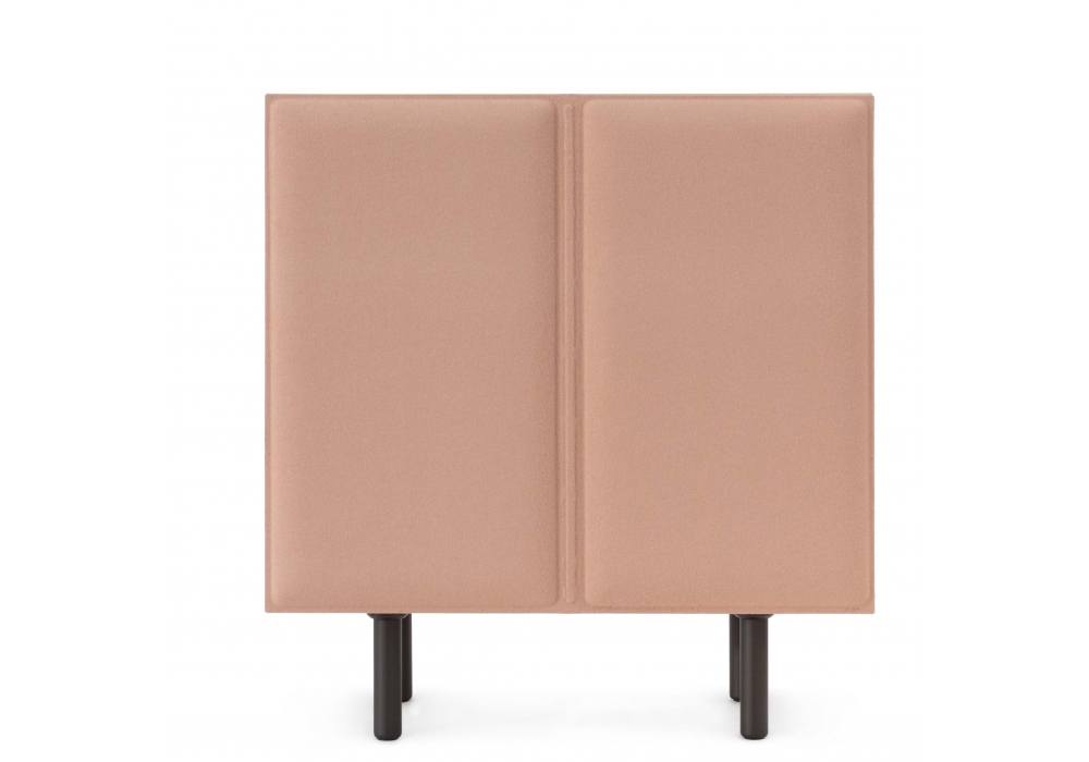 Tacito diseñado por Alessandro Stabile para Magis es un contenedor alto con estructura (laterales, trasera y estantes) en MDF pintado, puertas de fieltro y patas de aluminio anodizado acabado marrón oscuro.