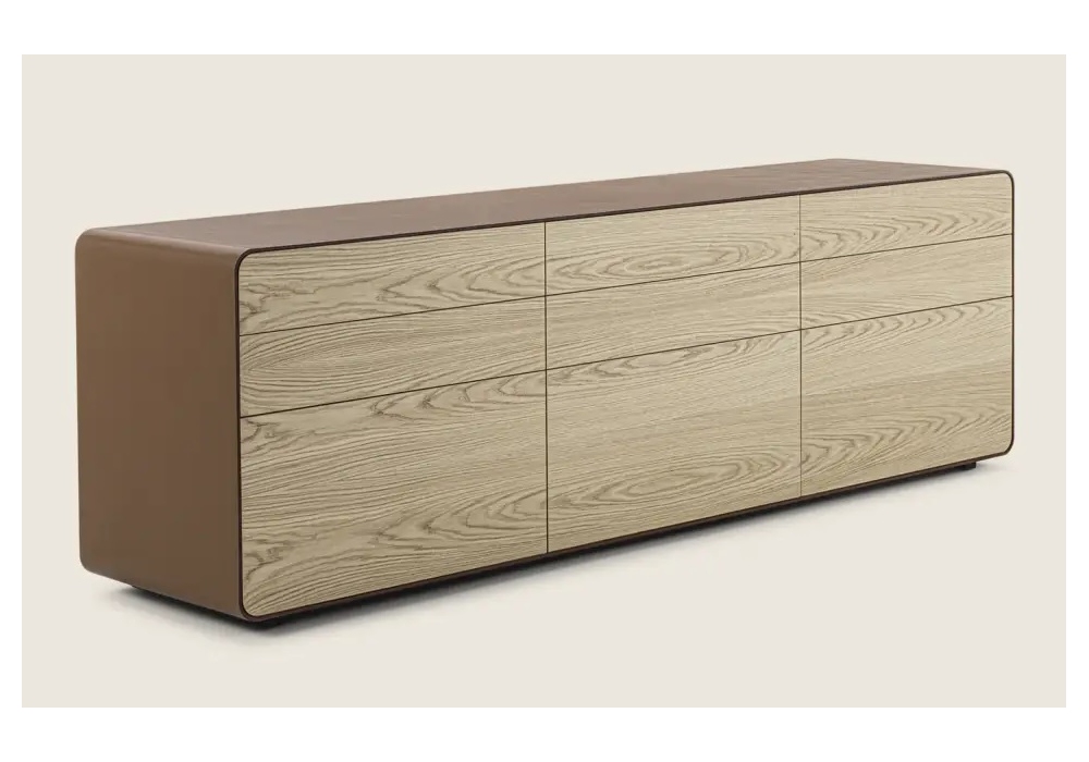 Clarence diseñado por Antonio Citterio para Flexform es un aparador con estructura de madera, disponible en diferentes acabados. Revestimiento en cuero en varios colores. Se apoya sobre patas de madera pintadas en negro mate. Disponible en diferentes modelos.