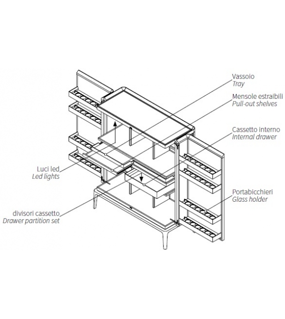 Neverfull High by Ceccotti Collezioni is a sideboard made in solid American walnut and plywood venereed American walnut, internal in maple wood and doors with 8 shelves, top in wood. On request, are available internal accessories.