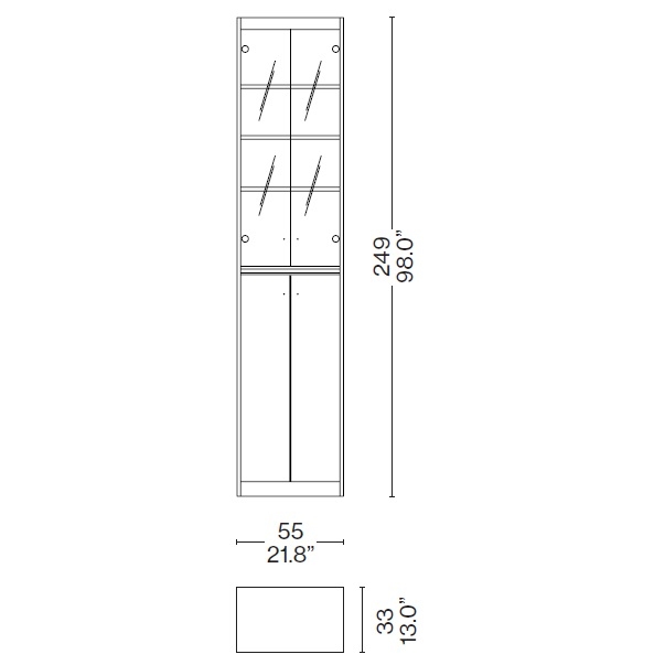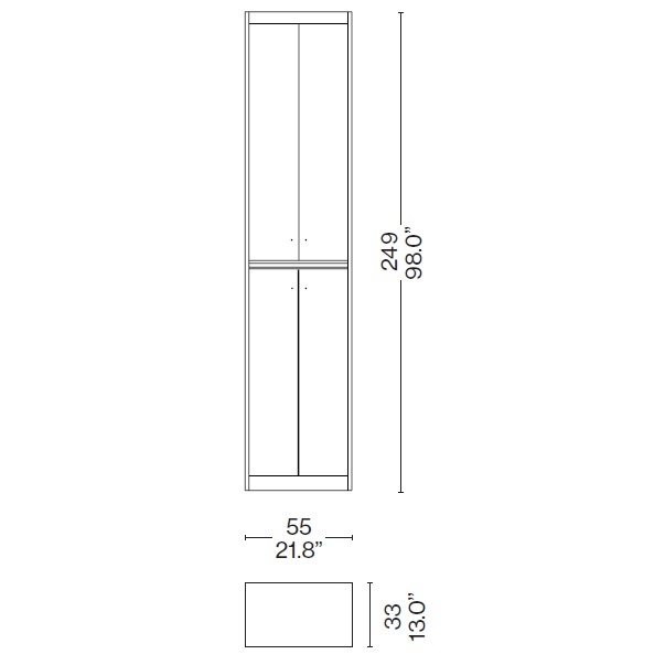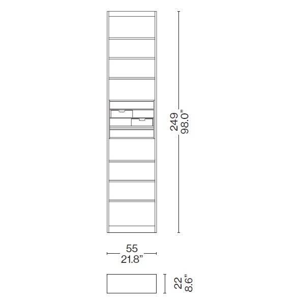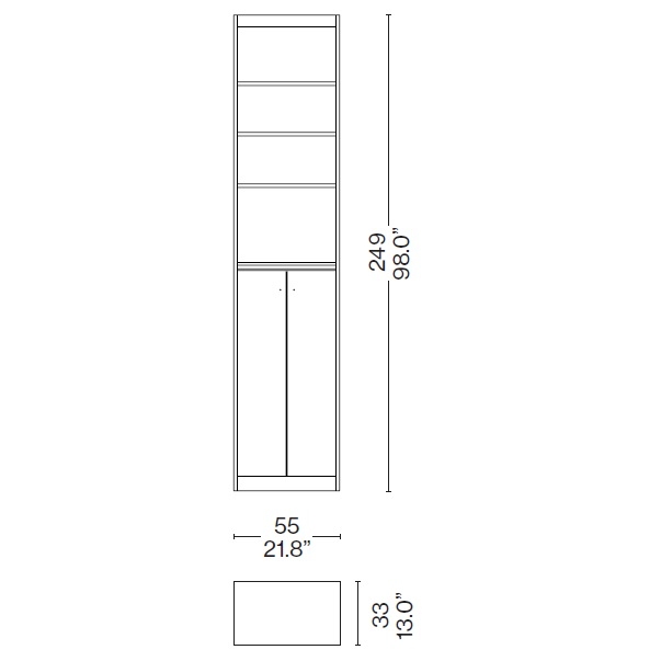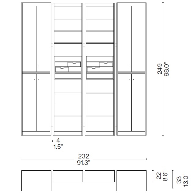 Rialto diseñado por Carlo Scarpa para Cassina es un mueble de madera contrachapada o lacada mate, con cajones de MDF, puertas de madera o cristal templado y tiradores metálicos. Disponible en varios acabados.