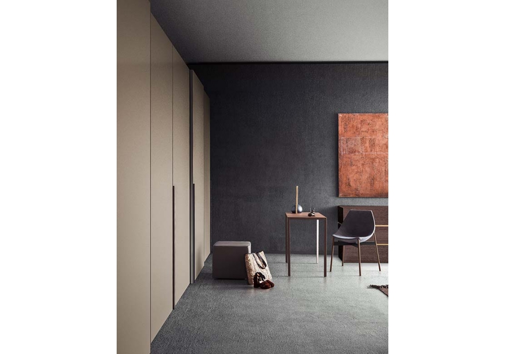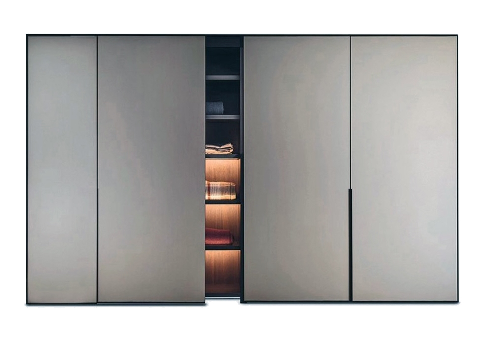 Cornice diseñado por Pianca es un armario modular realizado con puertas batientes, correderas y coplanares disponible en cristal lacado, espejo, madera, matorral, polipiel y lacado. Estructura de aluminio lacado o anodizado negro.