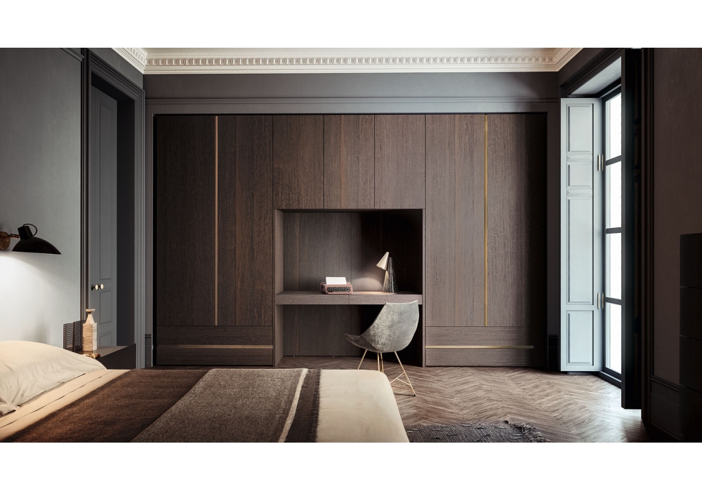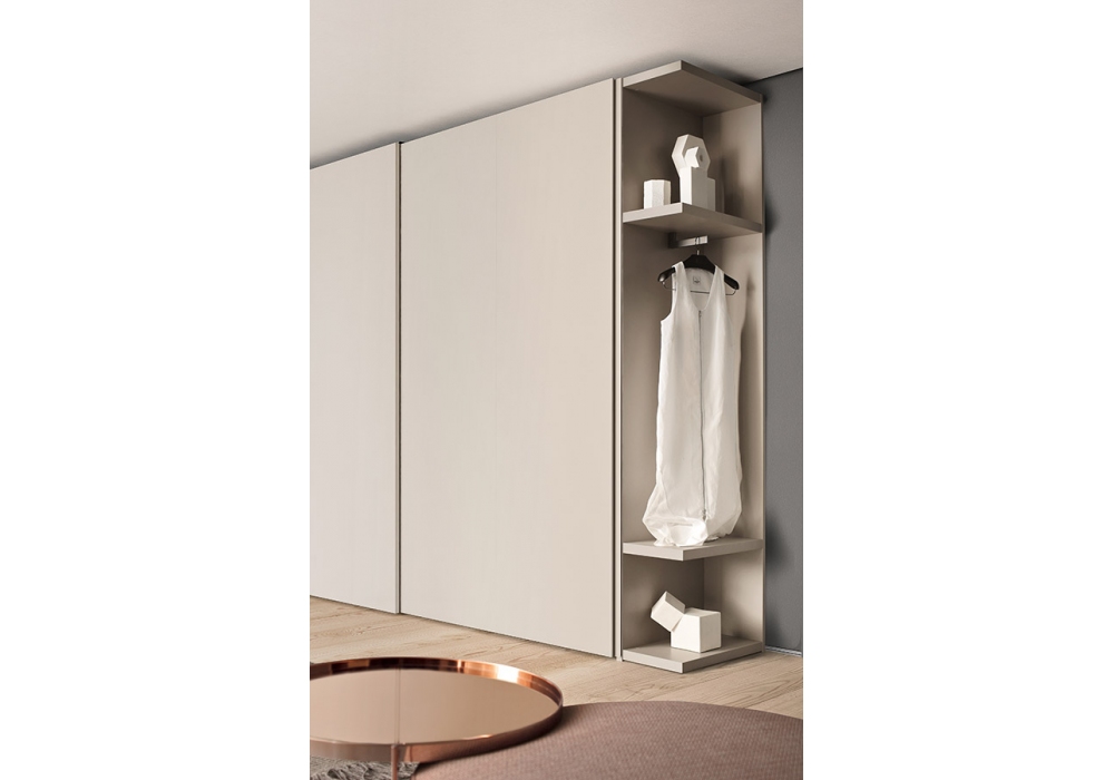 Nastro diseñado por Pianca es un armario modular. Ofrece una amplia gama de acabados y soluciones especiales: cajonera exterior, módulo puente, sobre puerta, TV, módulo open end así como trabajos a medida. Integrados en las puertas, los tiradores de aluminio de altura completa perfilan ranuras en colores lacados o acabados metálicos brillantes.