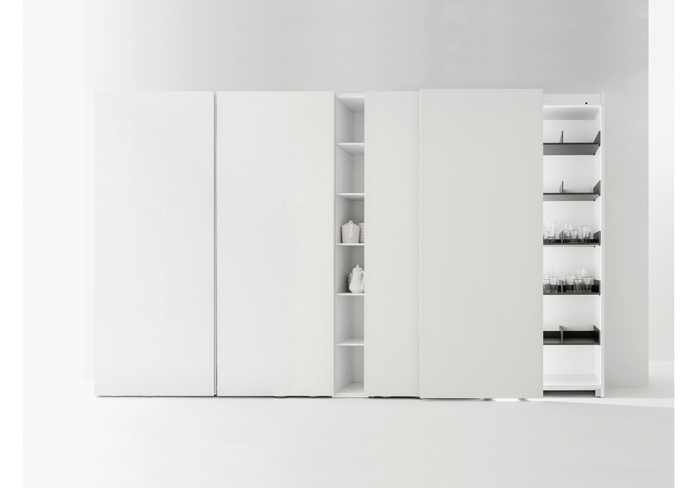 Core Coplanare diseñado por R&D Caccaro para Caccaro es un sistema modular con un mecanismo de apertura coplanar que permite que la puerta salga de su asiento y se deslice con fluidez sobre el otro. En el exterior, no hay diferencia de altura cuando el módulo está cerrado. Disponible en diferentes acabados y dimensiones.