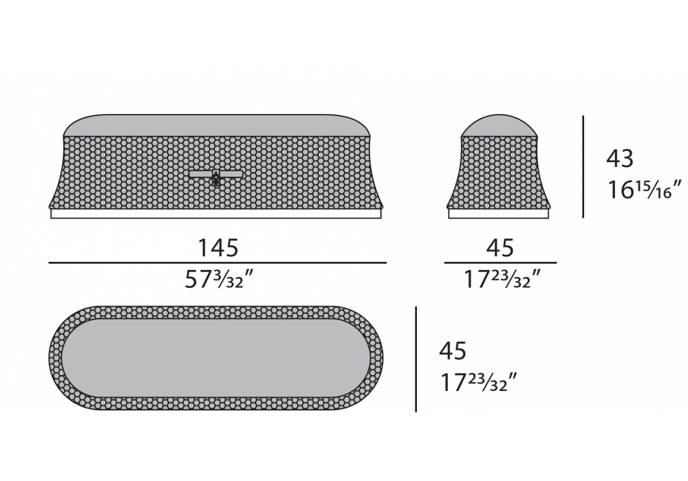 Vogue diseñado por Andrea Bonini para Turri es un banco con estructura en madera contrachapada y madera maciza acolchada con espuma de poliuretano. Revestimiento en tejido o piel no desenfundable con bordado hexagonal en la estructura. Base de metal en acabado dorado.