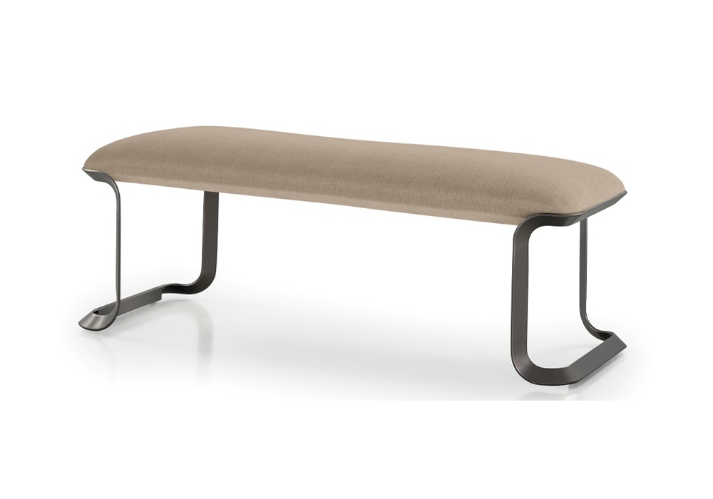 Milano diseñado por Blengini Ghirardelli para Turri es un banco con estructura de madera contrachapada con cojines de espuma de poliuretano. Tapicería en diferentes tejidos o pieles. Patas de metal en acabado níquel cepillado con pies de plástico.
