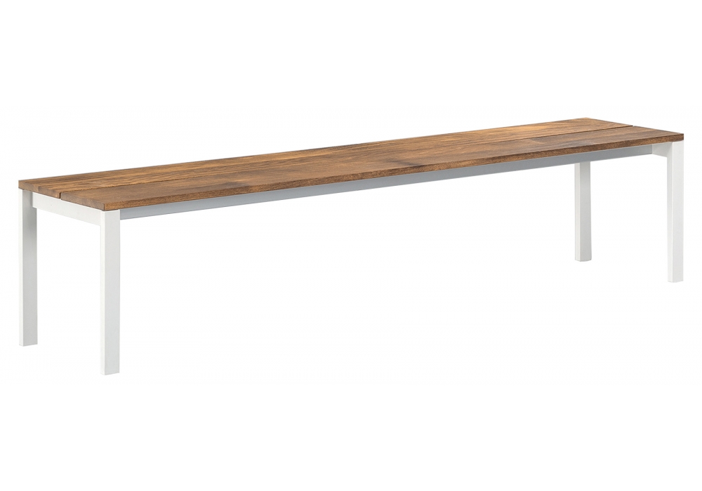 Be-Easy Slatted diseñado por Bluezone para Kristalia es un banco de exterior con patas de acero y asiento de láminas de aluminio o teca. Disponible en diferentes acabados y dimensiones.