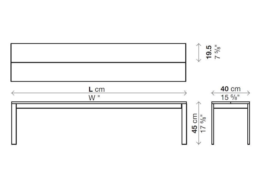 | Dimensiones | 140 x 40 x H 45 cm; 160 x 40 x H 45 cm; 180 x 40 x H 45 cm; 200 x 40 x H 45 cm. |