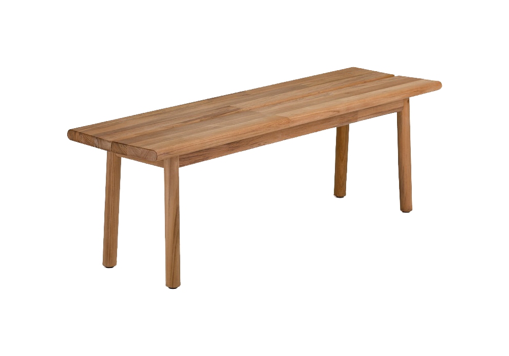Tibbo diseñado por Edward Barber y Jay Osgerby para Dedon es un banco de teca. Disponible en varias dimensiones.