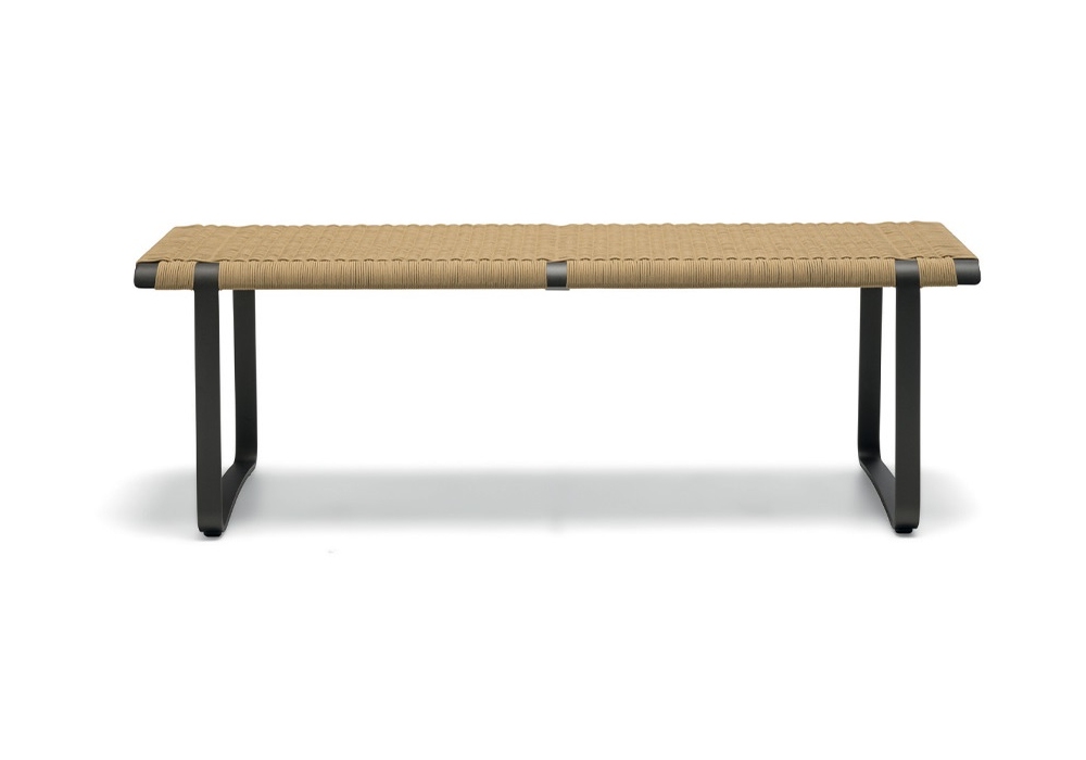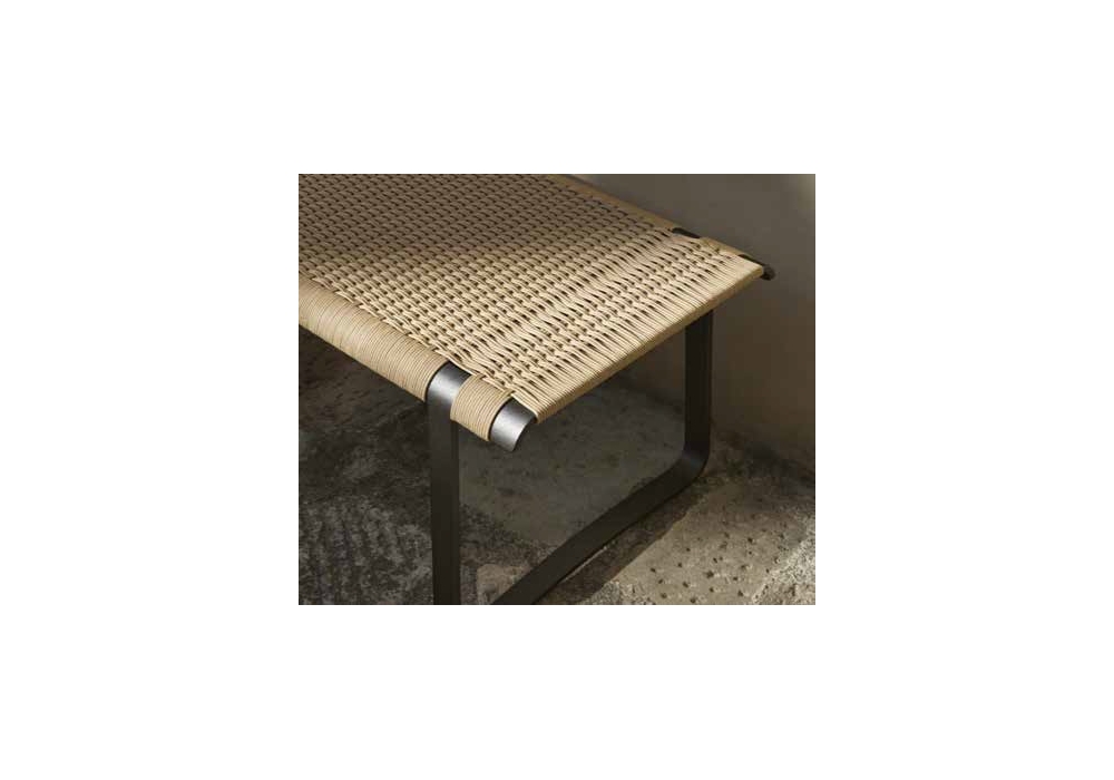 Green Point diseñado por Vincent Van Duysen para Molteni&C es un banco realizado con estructura de metal bruñido y asiento de cuerda trenzada. Cojín de asiento bajo pedido.