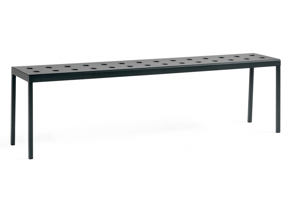 Balcony diseñado por Ronan & Erwan Bourrollec para Hay es un banco de exterior realizado en acero pintado en polvo con revestimiento de dos componentes; una imprimación exterior y una capa de polvo que proporciona una barrera a los elementos corrosivos, haciéndolo adecuado para uso en exteriores. Disponible en diferentes acabados. A petición es posible añadir un cojín de asiento.