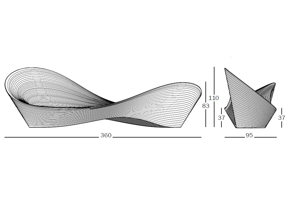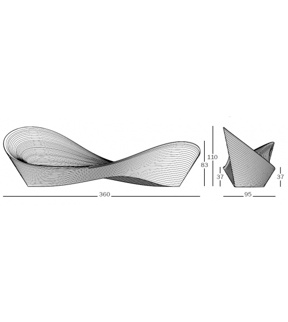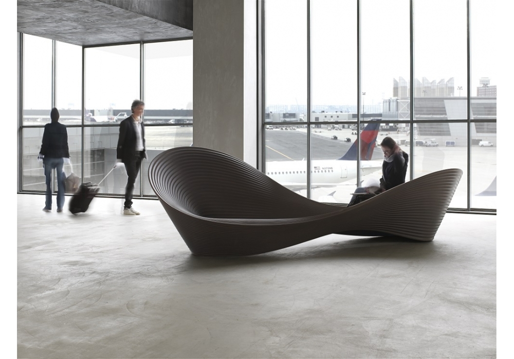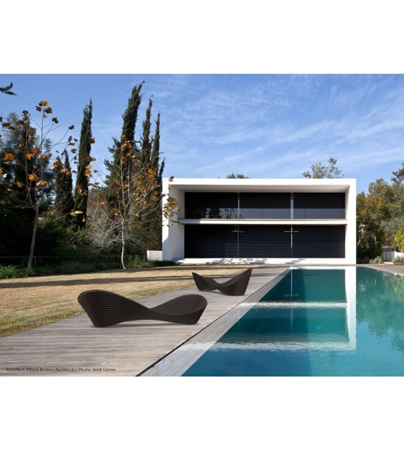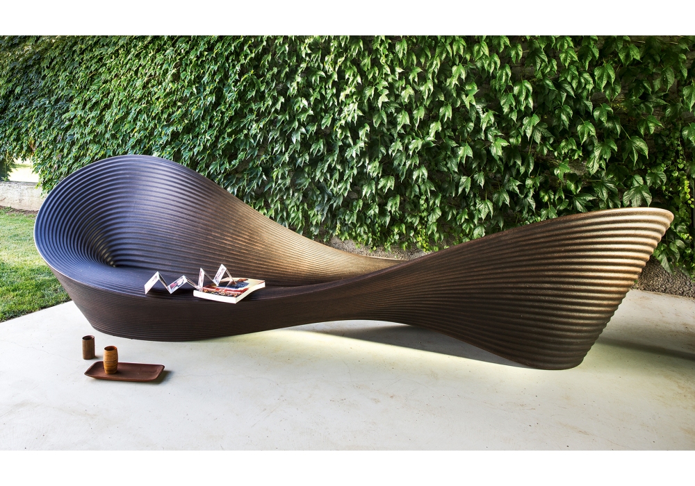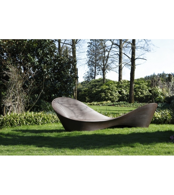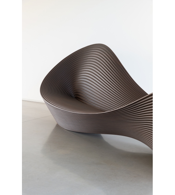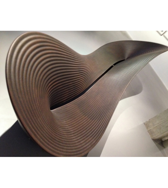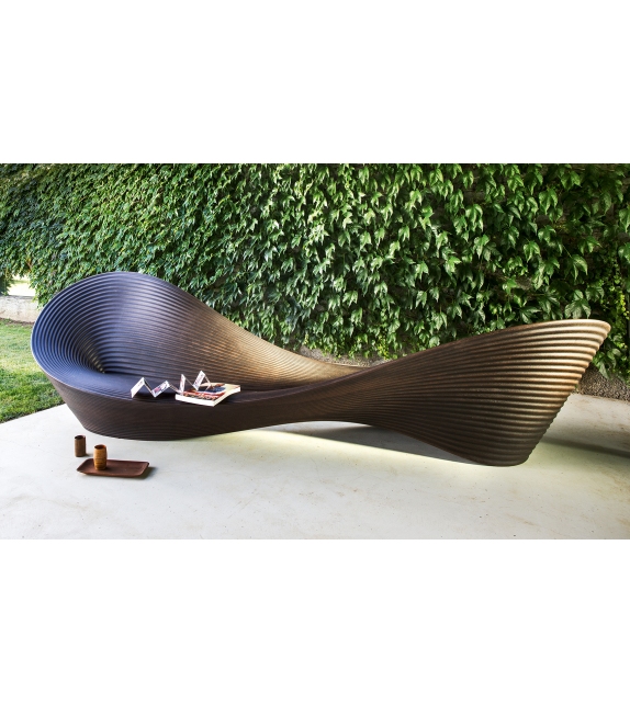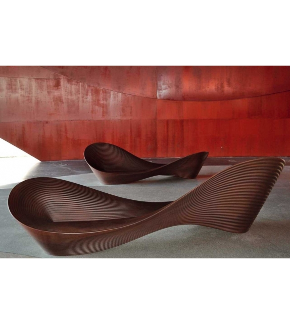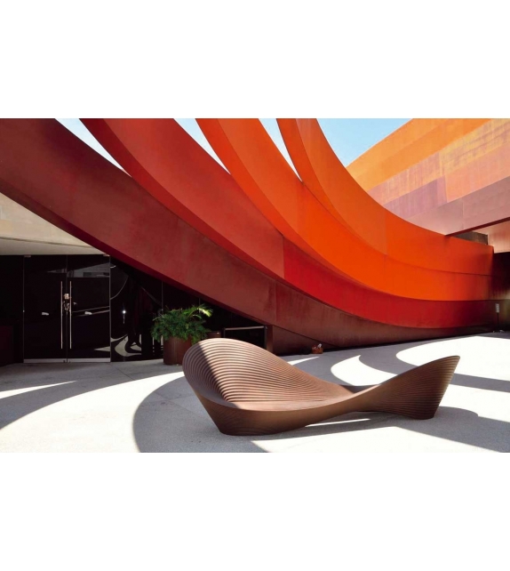 Folly diseñado por Ron Arad para Magis es un banco realizado en polietileno, también apto para exteriores. También disponible kit para fijación al suelo.