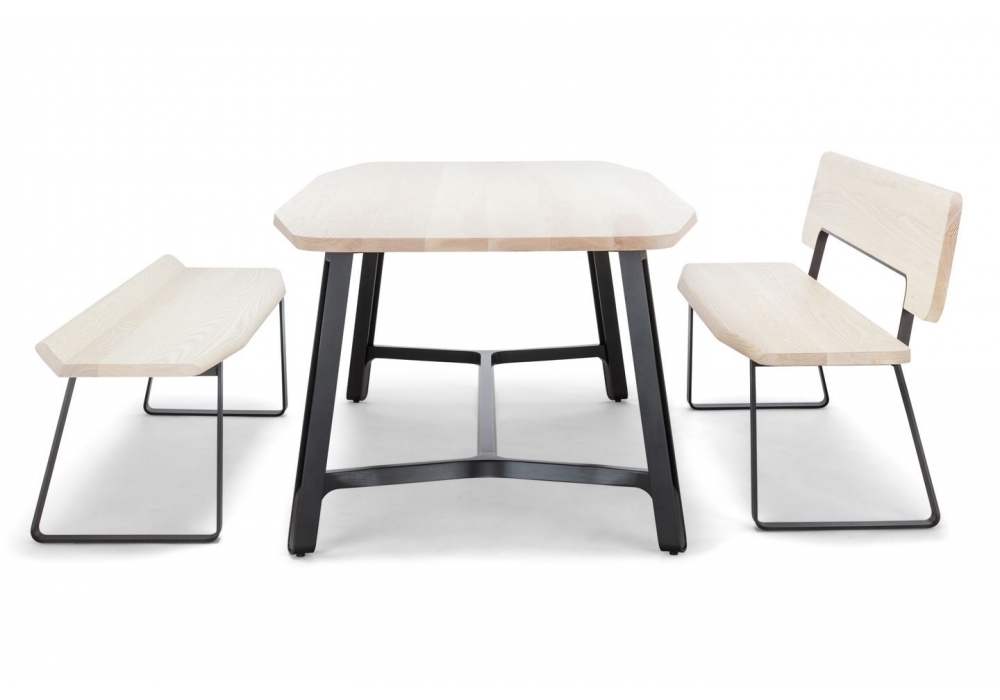 S 1094 diseñado por Randolf Schott para Thonet es un banco con estructura en acero plano curvado, negro "efecto hierro fundido". Panel del asiento en madera maciza de fresno o nogal.