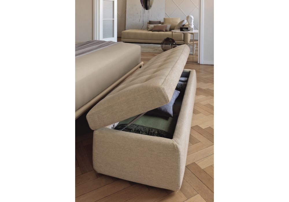 Iko diseñado por Rodolfo Dordoni para Flou es un banco con un asiento suave que se puede levantar revelando un compartimiento espacioso del almacenaje para los sistemas de la ropa de cama, las almohadillas y otros artículos. Revestimiento extraíble en tejido o piel. Para la creación de un entorno armonioso, el banco IKO puede unirse a las otras piezas de la colección IKO que consta de una cama, consola y espejo, puf, sillón pequeño y mesas pequeñas.