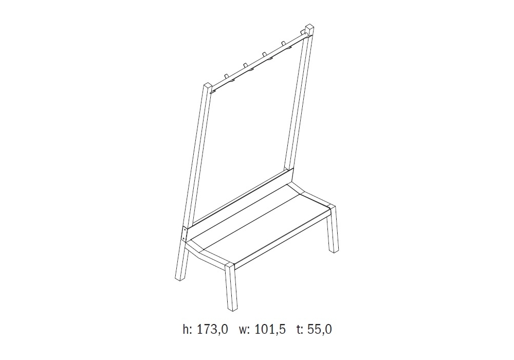 Yak diseñado por Rupert Kopp para Moormann es un banco con percha con estructura realizada en madera de fresno y asiento en acero barnizado en polvo color antracita. Disponible con o sin cojín de asiento en fieltro de lana ecru moteado/moteado antracita.