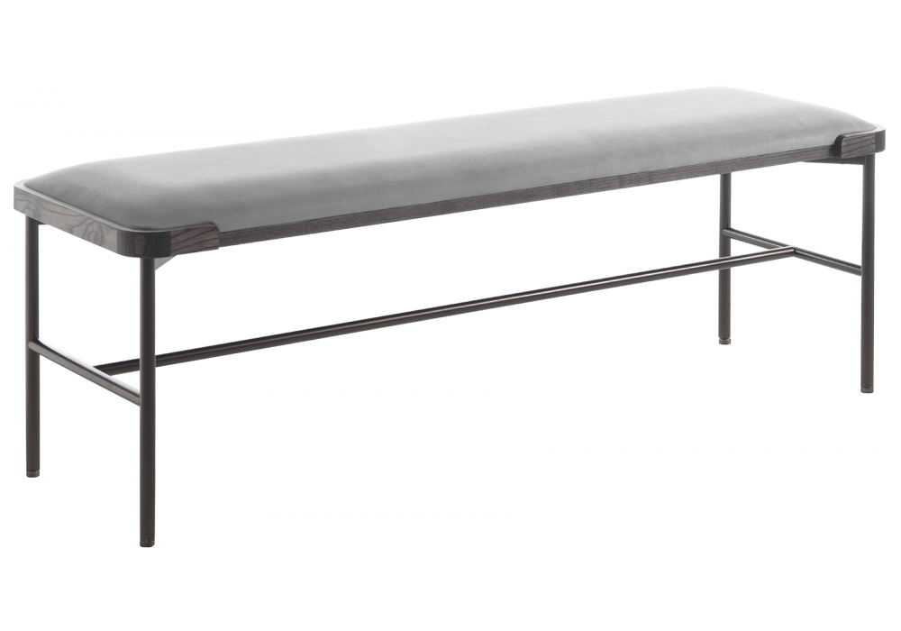 Astol diseñado por Staffan Tollgard para Porada es un banco con estructura de metal y madera y asiento tapizado en tejido o piel.