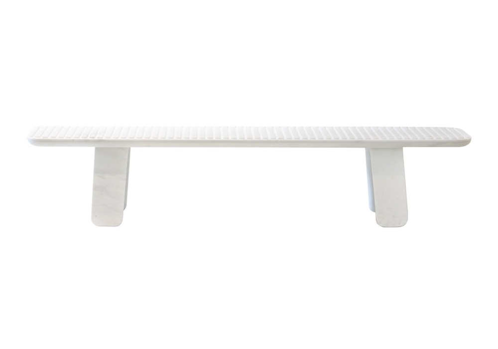 Fachiro diseñado por Patricia Urquiola para Budri es un banco realizado en mármol Bianco Carrara. También disponible en 2 medidas.