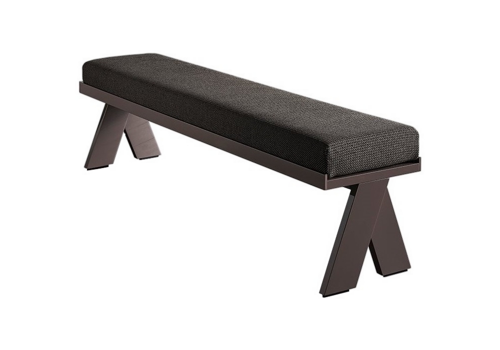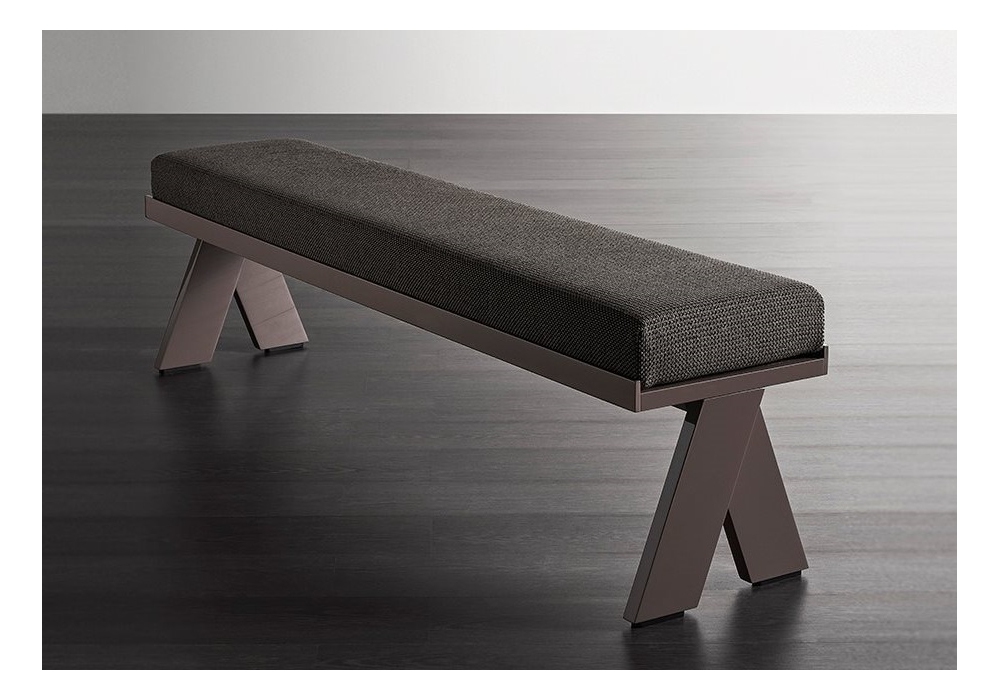 Joi Indoor diseñada por Andrea Parisio para Meridiani es una banqueta con revestimiento extraíble y base de metal barnizada en polvo. Cojín de asiento en poliuretano expandido y fibra de poliéster.