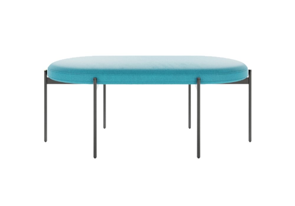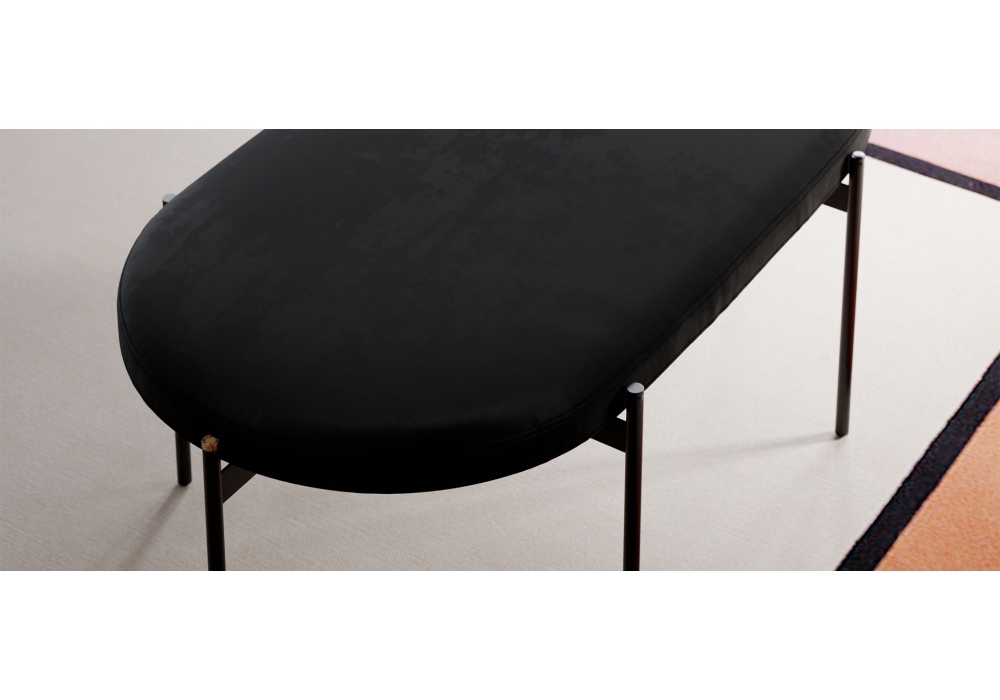 Caillou diseñado por la colección Liu Jo Living es un banco. El marco está realizado en madera contrachapada. Pie de metal disponible en cuatro colores. La cubierta disponible en tela o cuero.