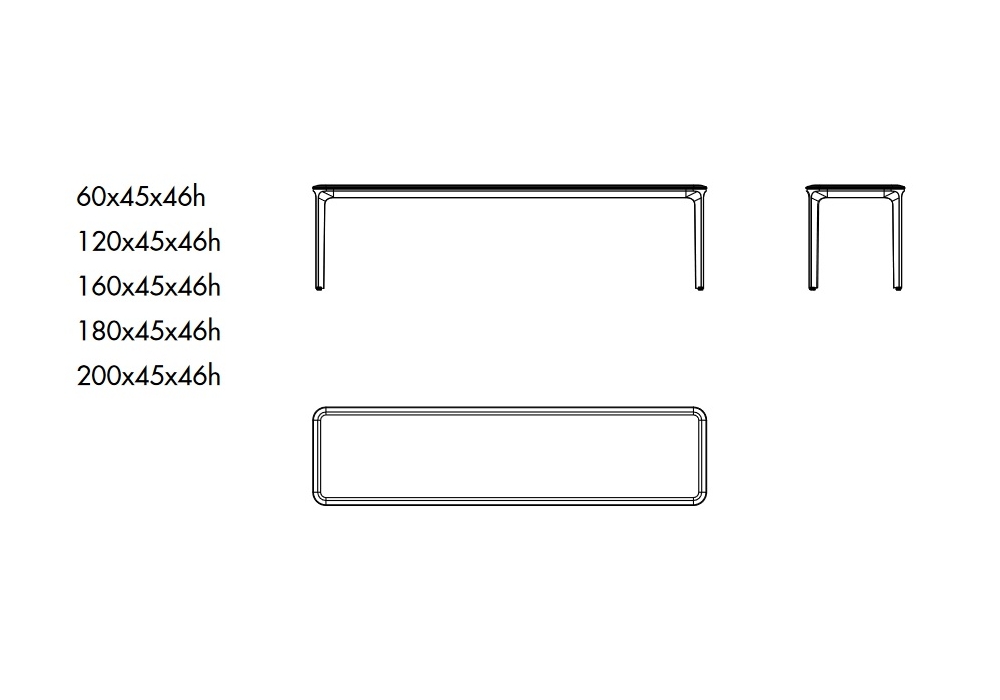 | Dimensiones | 60 x 45 x H 46 cm; 120 x 45 x H 46 cm; 160 x 45 x H 46 cm; 180 x 45 x H 46 cm; 200 x 45 x H 46 cm |