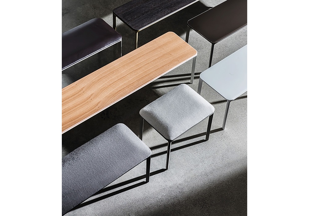 Slim diseñado por Matthias Demacker para Sovet es un banco realizado con asiento de madera o tapizado en piel, tela o terciopelo. Patas y estructura metálica. Disponible en diferentes acabados y dimensiones.