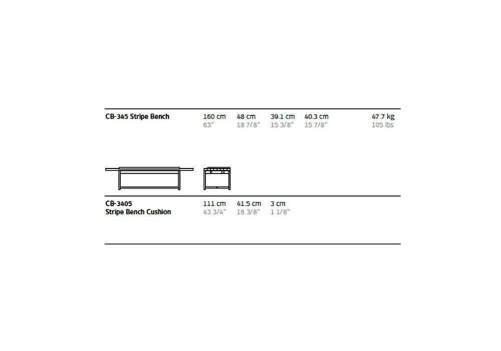 Stripe diseñado por Craig Bassam para BassamFellows, es un banco que da un efecto gráfico de impacto, con su tapa construida de mesas alternas de teca, fresno y nogal, dando así movimiento con efecto raya, se ha obtenido un hueco en la tapa para insertar un cojín opcional, todo apoyado por una sólida estructura de 4 pies.