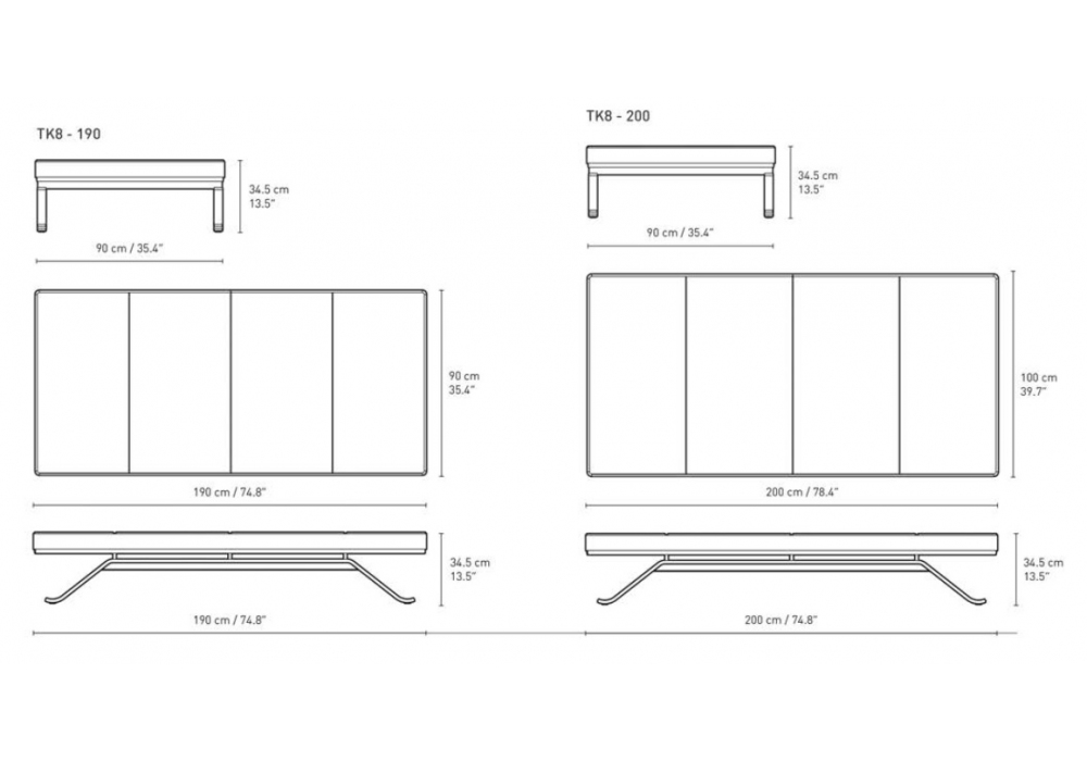 | Dimensiones | 190 x 90 x H 34,5 cm; 200 x 100 x H 34,5 cm. |