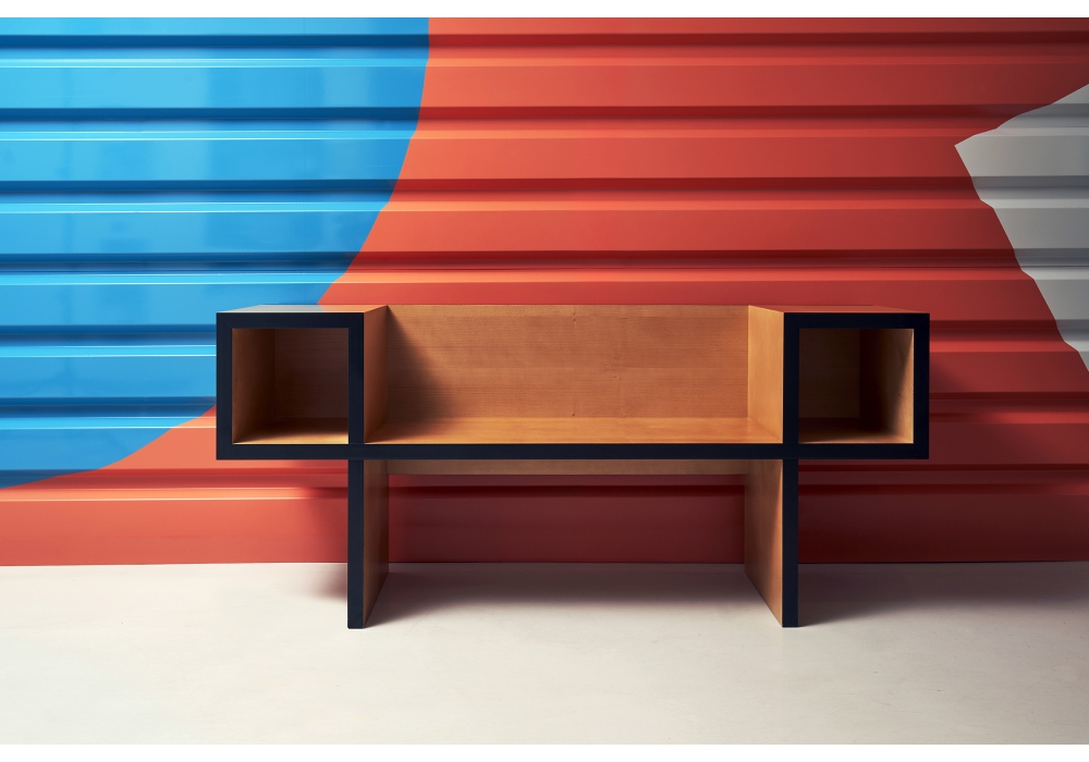 Canton diseñado por Franco Raggi para Poltronova es un banco realizado en madera de haya con canto de melamina y pintura al agua.