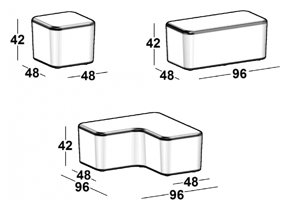 | Dimensiones | 48 x 48 x H 42 cm; 96 x 48 x H 42 cm; 96 x 96 x H 42 cm; |