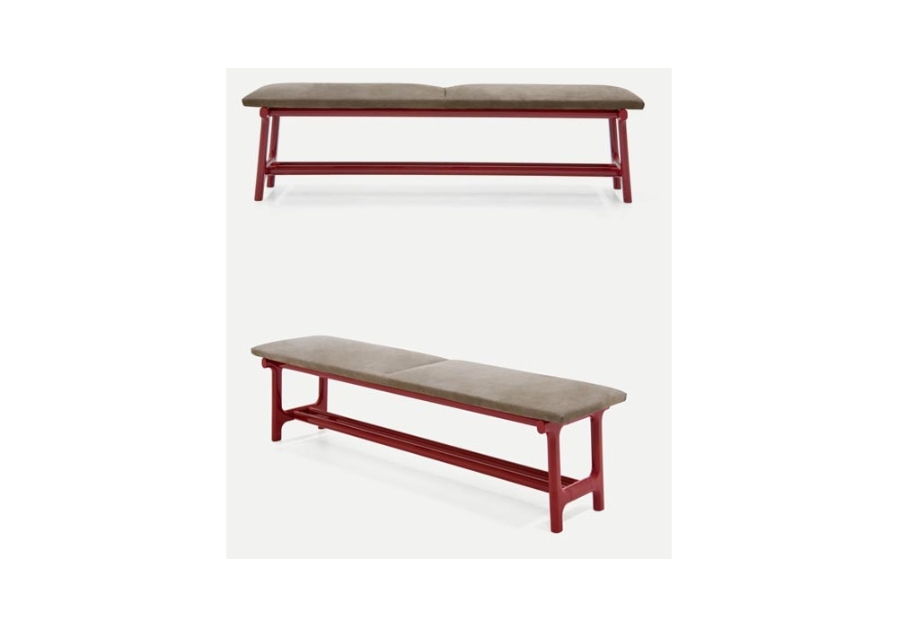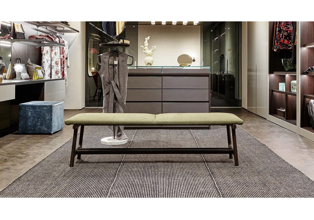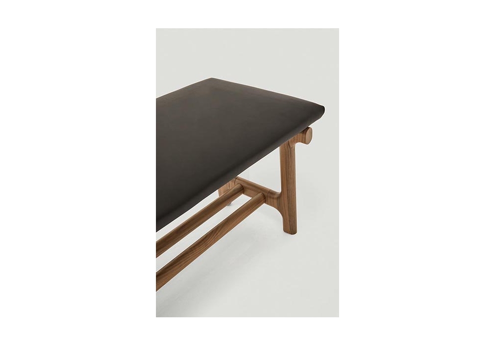 Fushimi diseñado por Philippe Tabet para Pianca es un banco con estructura realizada en madera maciza de nogal acabado Canaletto o en fresno macizo barnizado o lacado Essenza. Cojín de asiento con paneles de madera contrachapada acolchados y revestidos. Revestimiento en tela, piel o piel sintética.