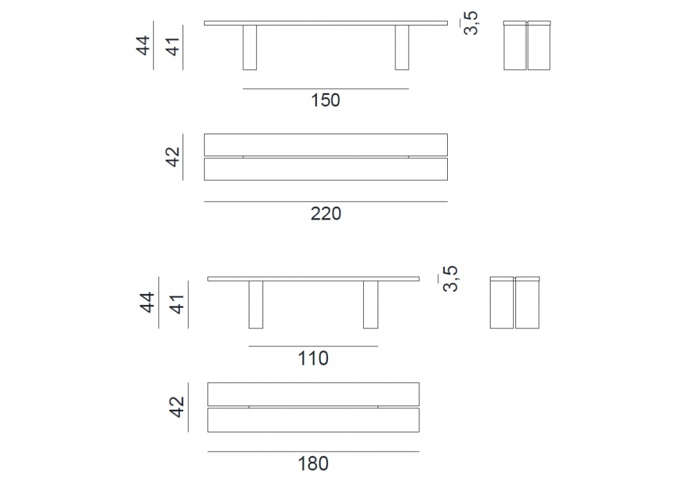 | Dimensiones | 220 x 42 x H 44 cm; 180 x 42 x H 44 cm. |