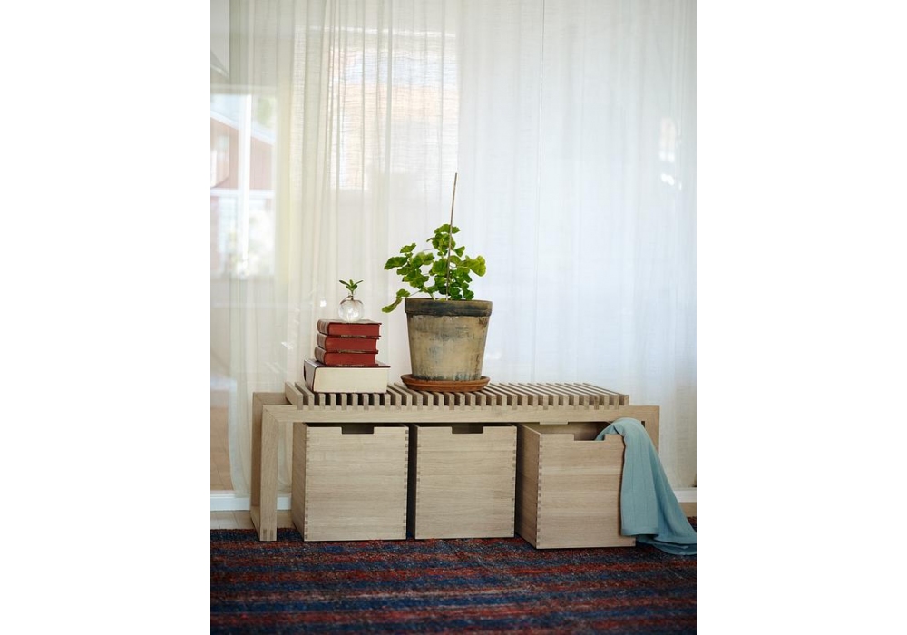 Cutter diseñado por Niels Hvass para Skagerak es un banco realizado en roble, disponible en diferentes acabados. Posibilidad de añadir cajas en el mismo acabado que la bancada.