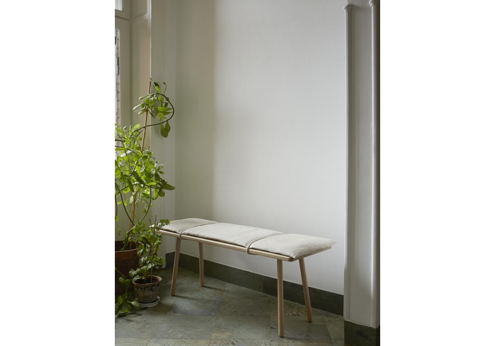 Georg diseñado por Chris Liljenberg Halstrøm para Skagerak es un banco con estructura de roble, asiento tapizado con revestimiento de tela. Disponible en diferentes acabados.