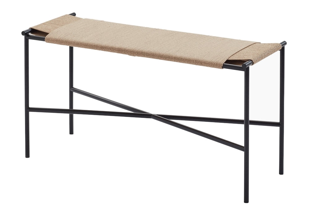 Vent diseñado por Chris Liljenberg Halstrøm para Skagerak es un banco realizado en acero negro y asiento en cuerda.